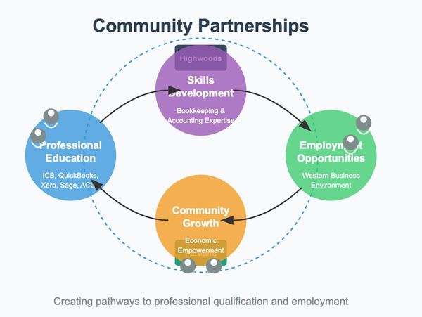 We builds sustainable economic growth through strategic community partnerships that enable individuals from underserved areas to gain professional accounting qualifications and secure meaningful employment.